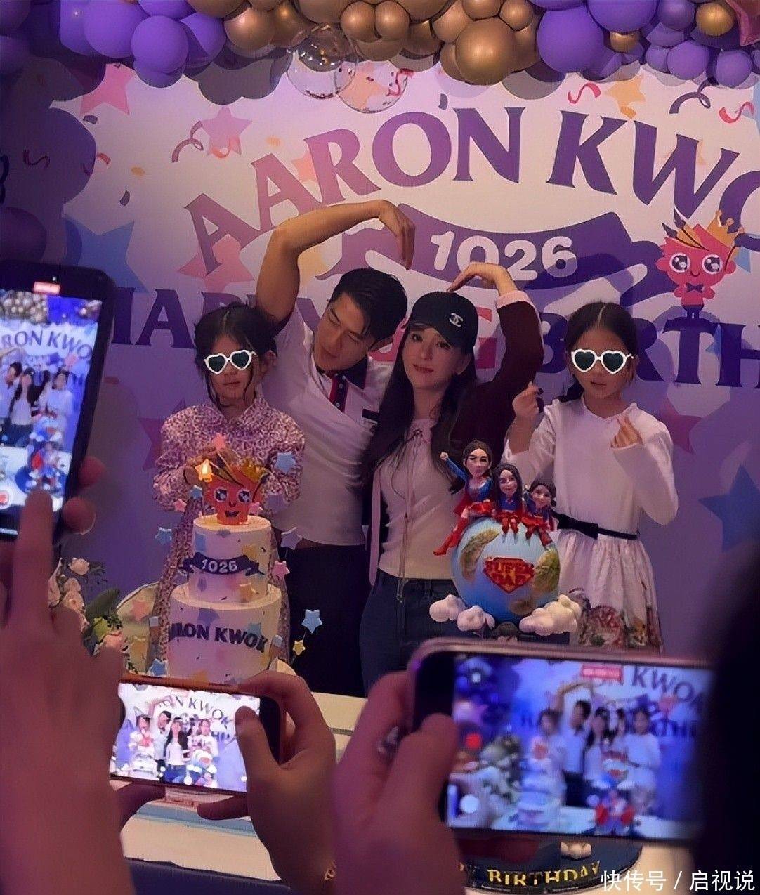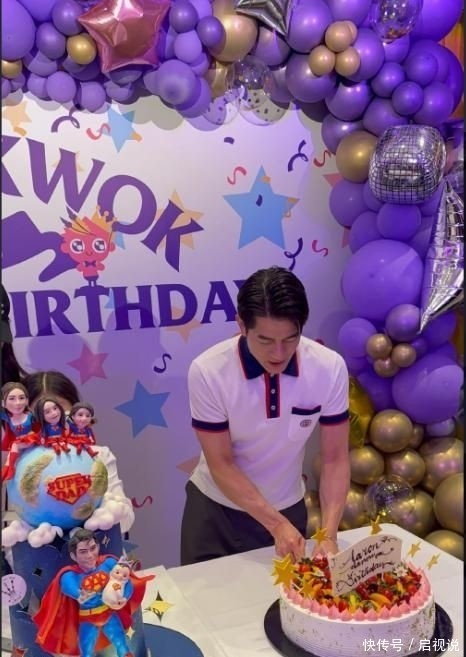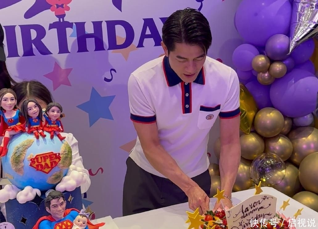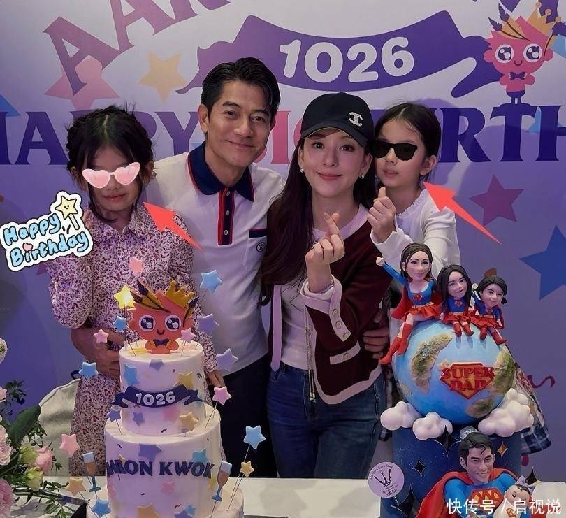 20. 左侧则是奥特曼主题蛋糕,前排呈现父亲怀抱小妹的画面,母亲与两位姐姐坐在地球图案之上,寓意郭富城以肩膀撑起整个家庭。