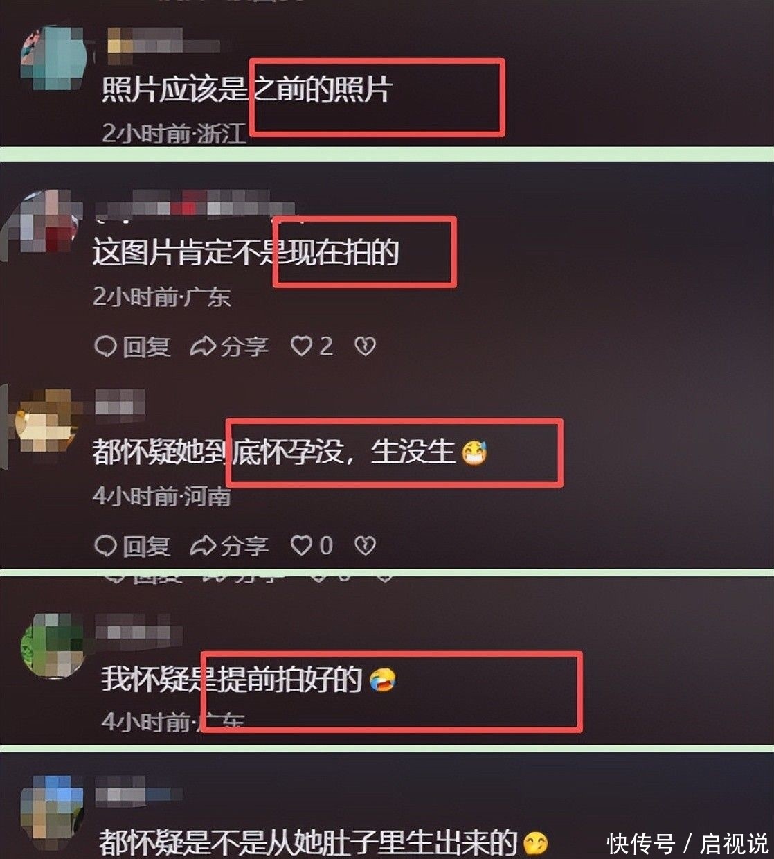 42. 还有人指出,方媛外貌毫无变化,按民间说法“怀儿子会让脸型改变”,而她却没有此类迹象。