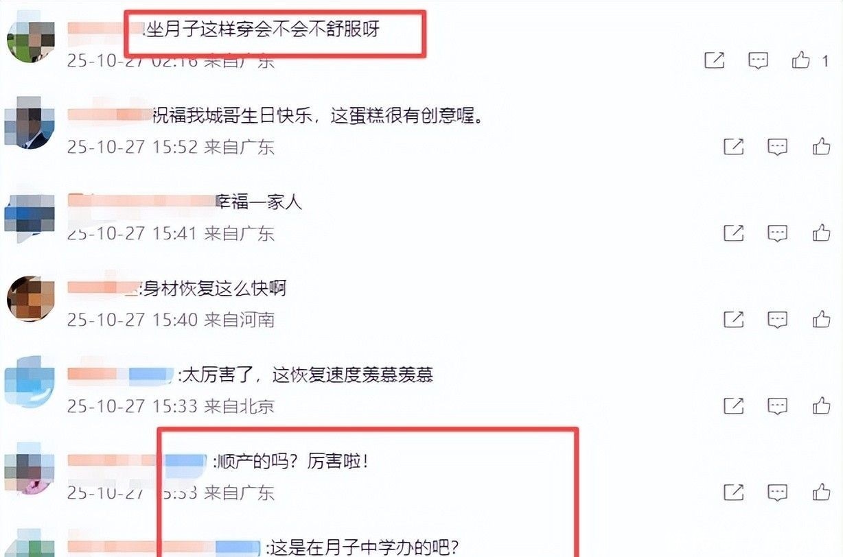 36. 此外,她在社交平台回复粉丝时表示:庆祝完生日就会立刻返回家中专心坐月子。